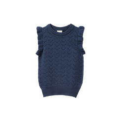 The perfect second layer, our sweet Mathilde Vest can be worn over long sleeve tops or dresses. In a beautiful pointelle knit pattern, this vest has a rib collar and hem with frill detail at the armholes. The perfect piece to take you through all seasons. * GOTS certified CU 862149 * 100% Organic cotton knit * Pointelle knit pattern * Rib collar and hem * Frill detail on armholes
