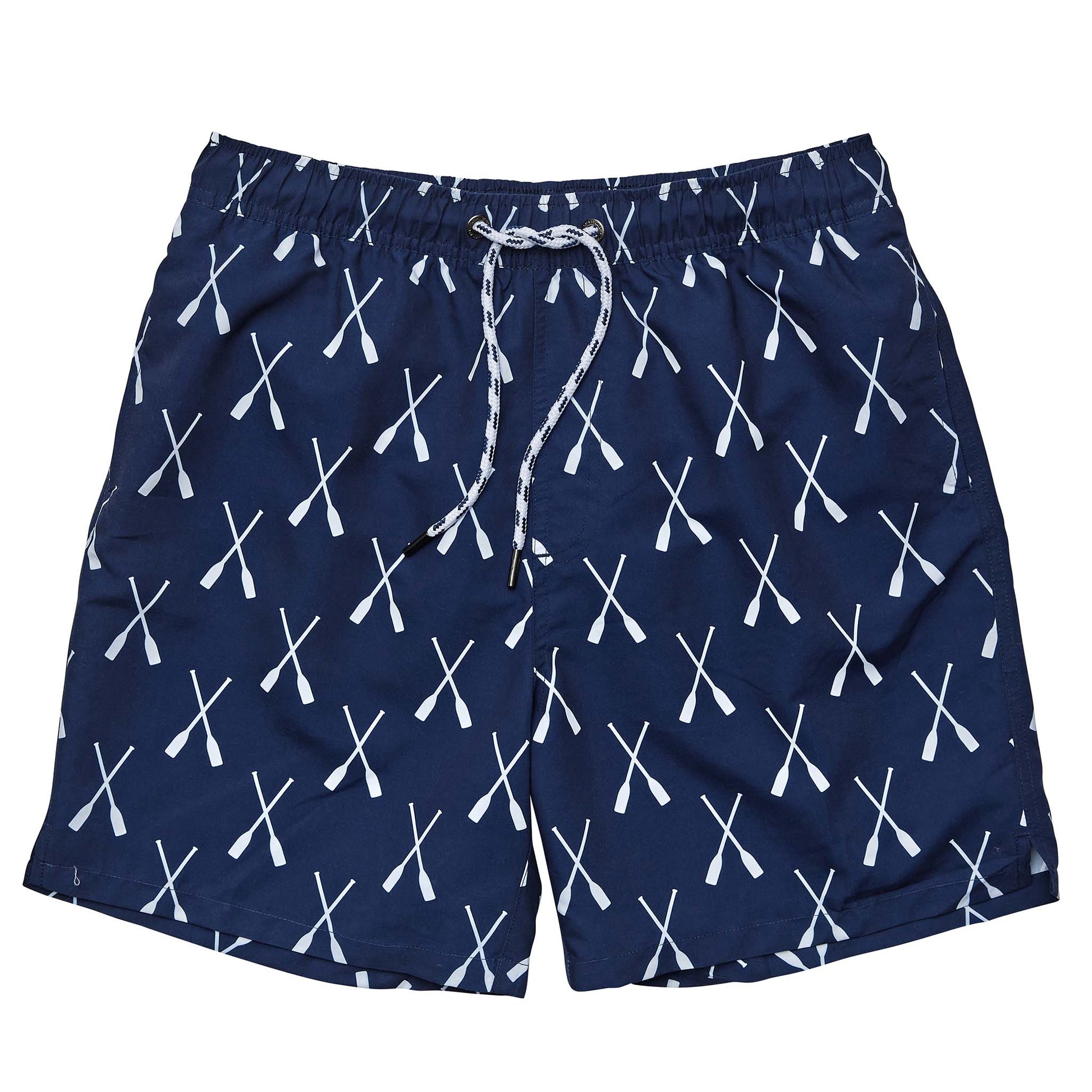 Hire a canoe and hit the waves in our Mens Riviera Rowers Volley Board Shorts. The shorts feature our boat-inspired oar print, with the navy and white fleck drawcord and mesh lining offering both comfort and style.