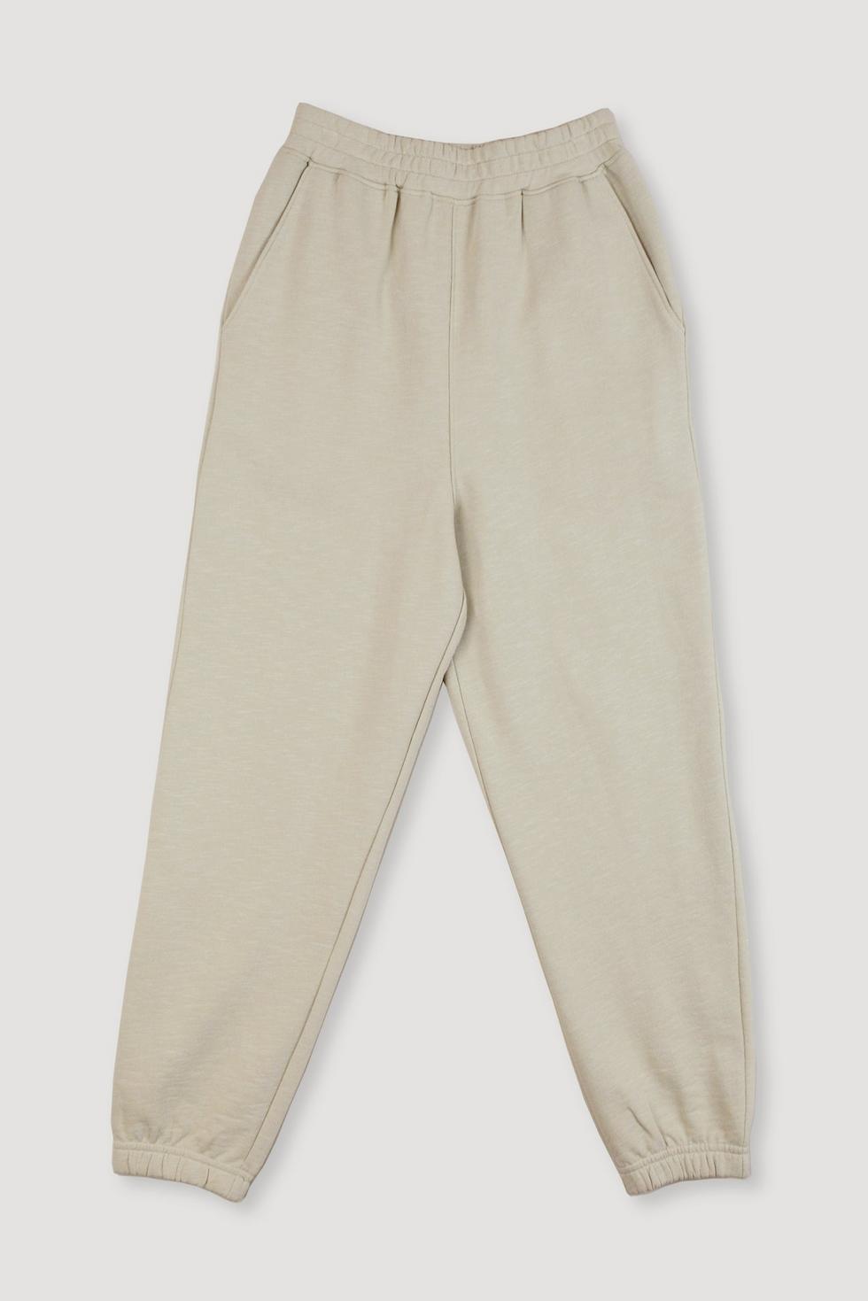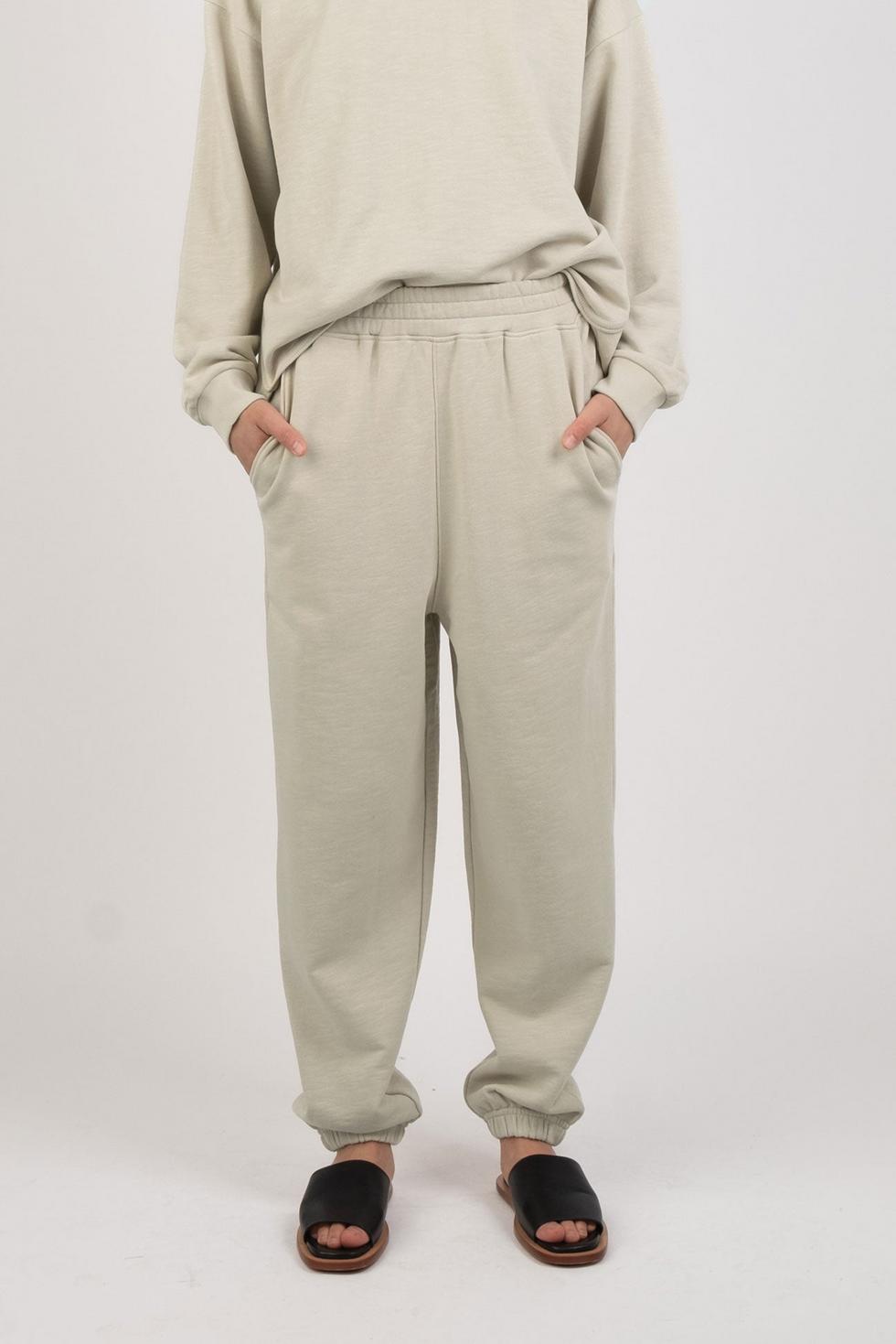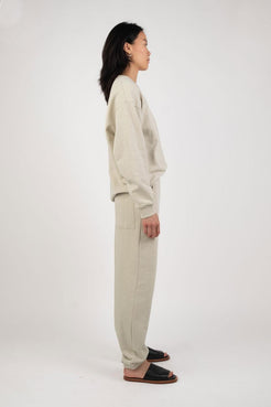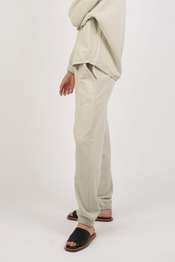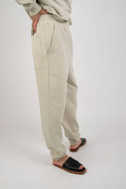 Easy, relaxed fit sweatpant in slub terry, featuring slash pockets and elastic at the bottom hem.