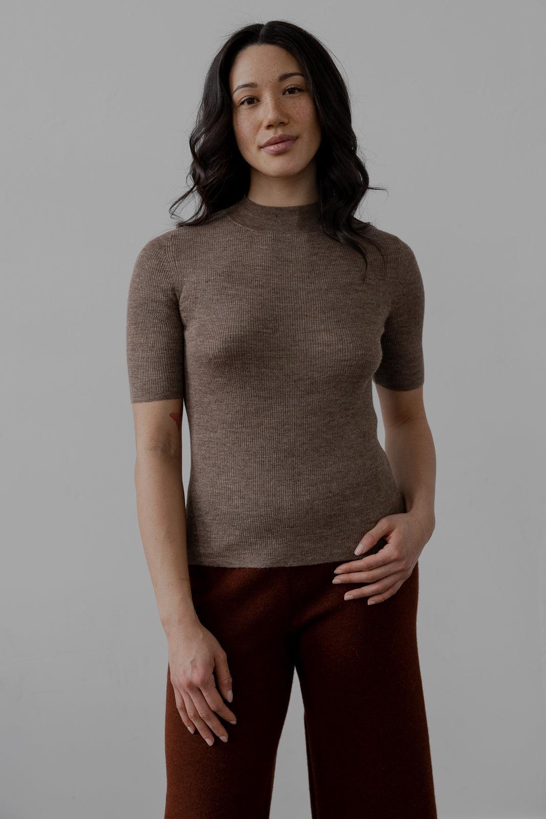 The mock neckline provides just the right amount of coverage for colder temperatures. The all-over rib knit construction contours the body, making it easy to layer. This piece is made from ultra-fine baby alpaca silk, and we appreciate its breathability and lightweight characteristics.