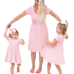 Introducing our first ever ladies' dress! This dress mimics our best selling Swirly Girl Dress for the ultimate mommy and me outfit. As always, our clothes are made for total comfort with zero binding, zero tags, and crafted in our buttery Ecolux Jersey.