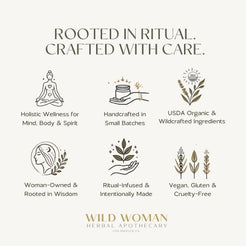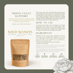 Experience soothing support during your menstrual journey with Wild Woman Herbal Apothecary Moon Cycle Support Tea. This intentionally crafted herbal blend offers gentle comfort throughout your cycle—nourishing your body with essential nutrients while easing physical discomfort and promoting hormonal harmony. A beautiful ritual to reconnect with the emotional and spiritual rhythms of menstruation.