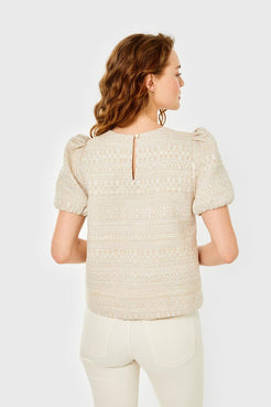 The Noemie top is elegantly tailored in our luxe French tweed. This structured silhouette is adorned with whimsical details that make the top sophisticated and effortless. Dress it up with slacks or down with jeans for a versatile style.