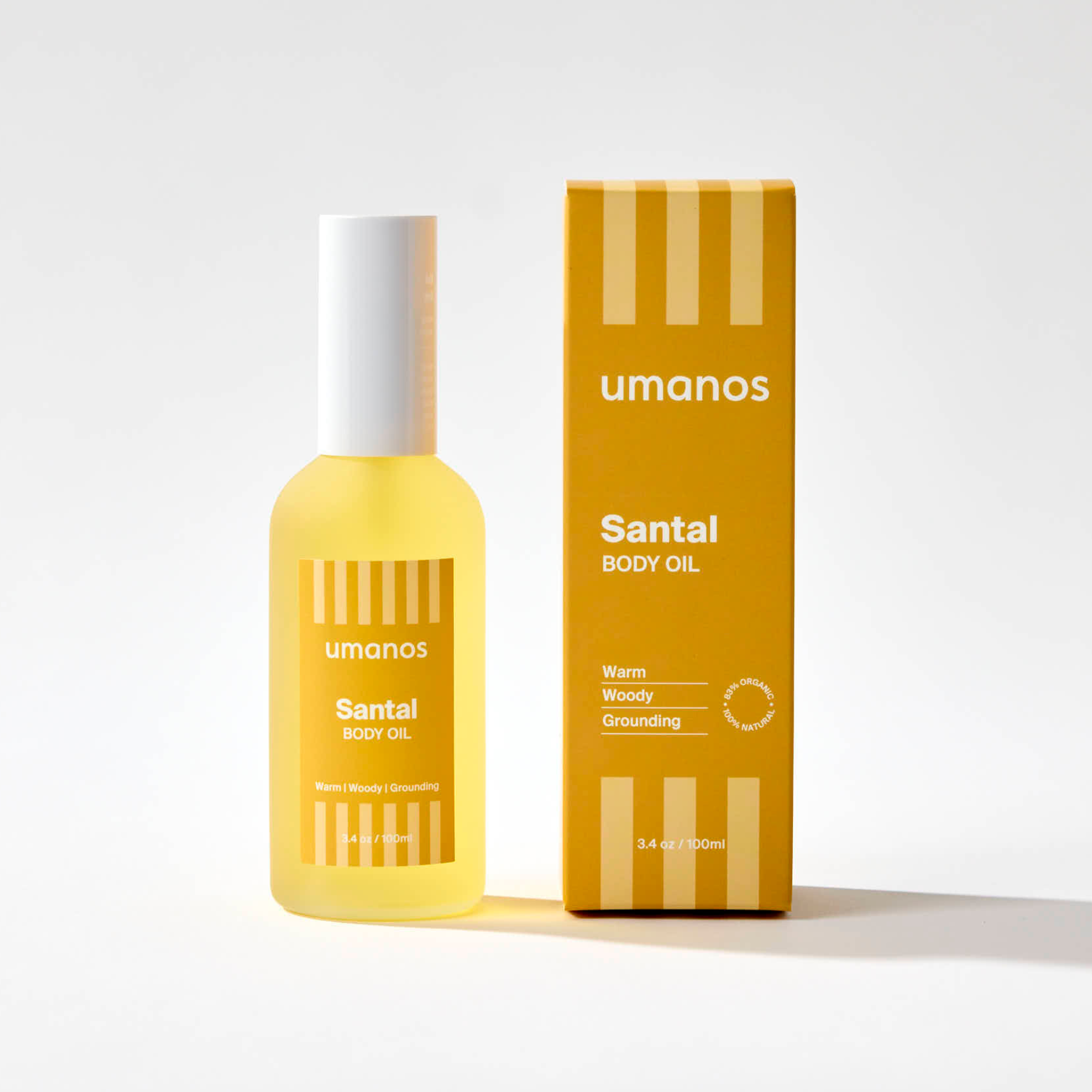 Indulge in everyday ritual with Santal, a nourishing body oil that embodies grounded luxury and sustainable beauty. Handcrafted with organic, plant-based ingredients and enriched with vitamins A, C, and E, this oil deeply hydrates, smooths, and rejuvenates the skin while restoring its natural glow.