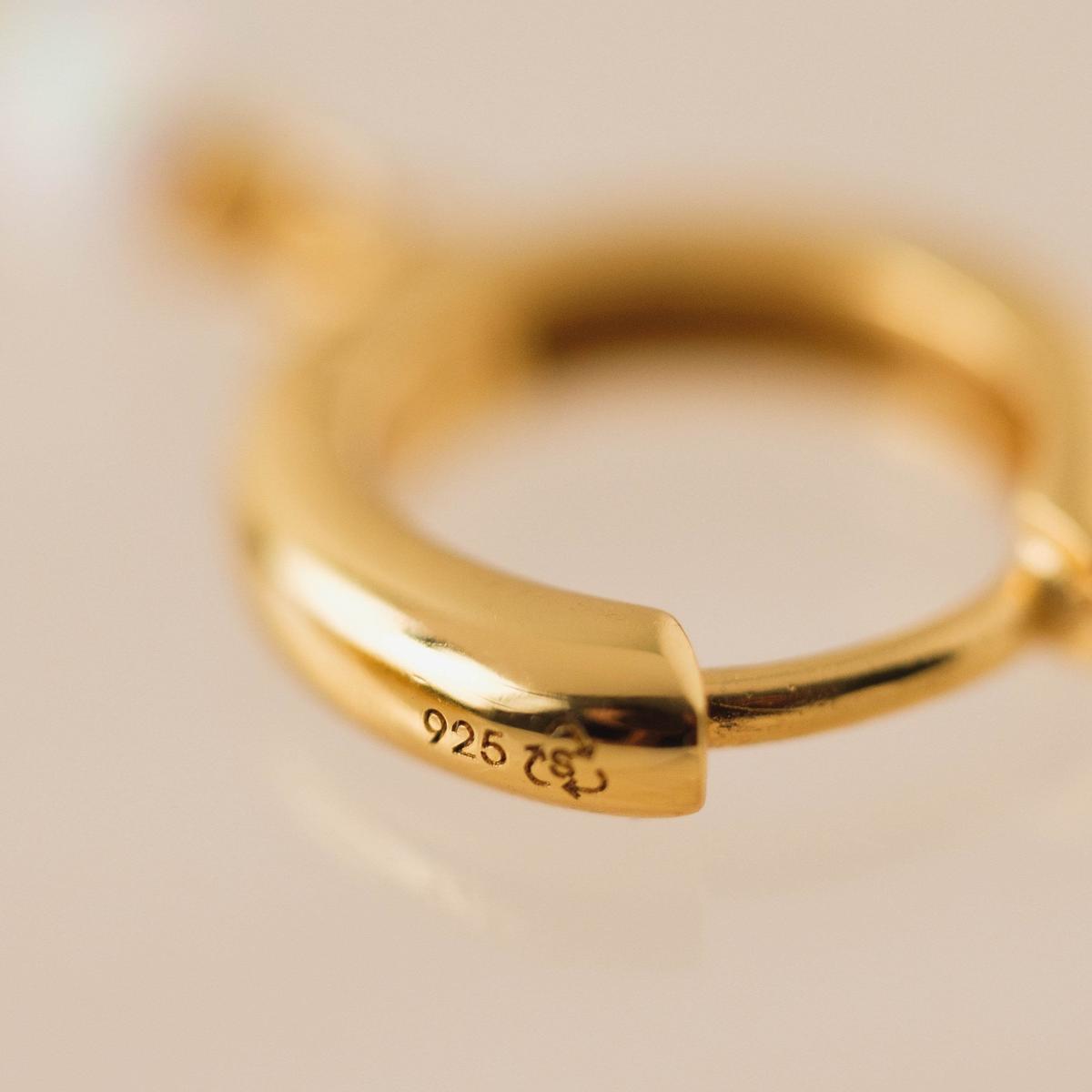10.5mm Recycled Sterling Silver 14K Gold-Plated Synthetic Opal Stone Made in Thailand A gold-plated hoop with a tin...