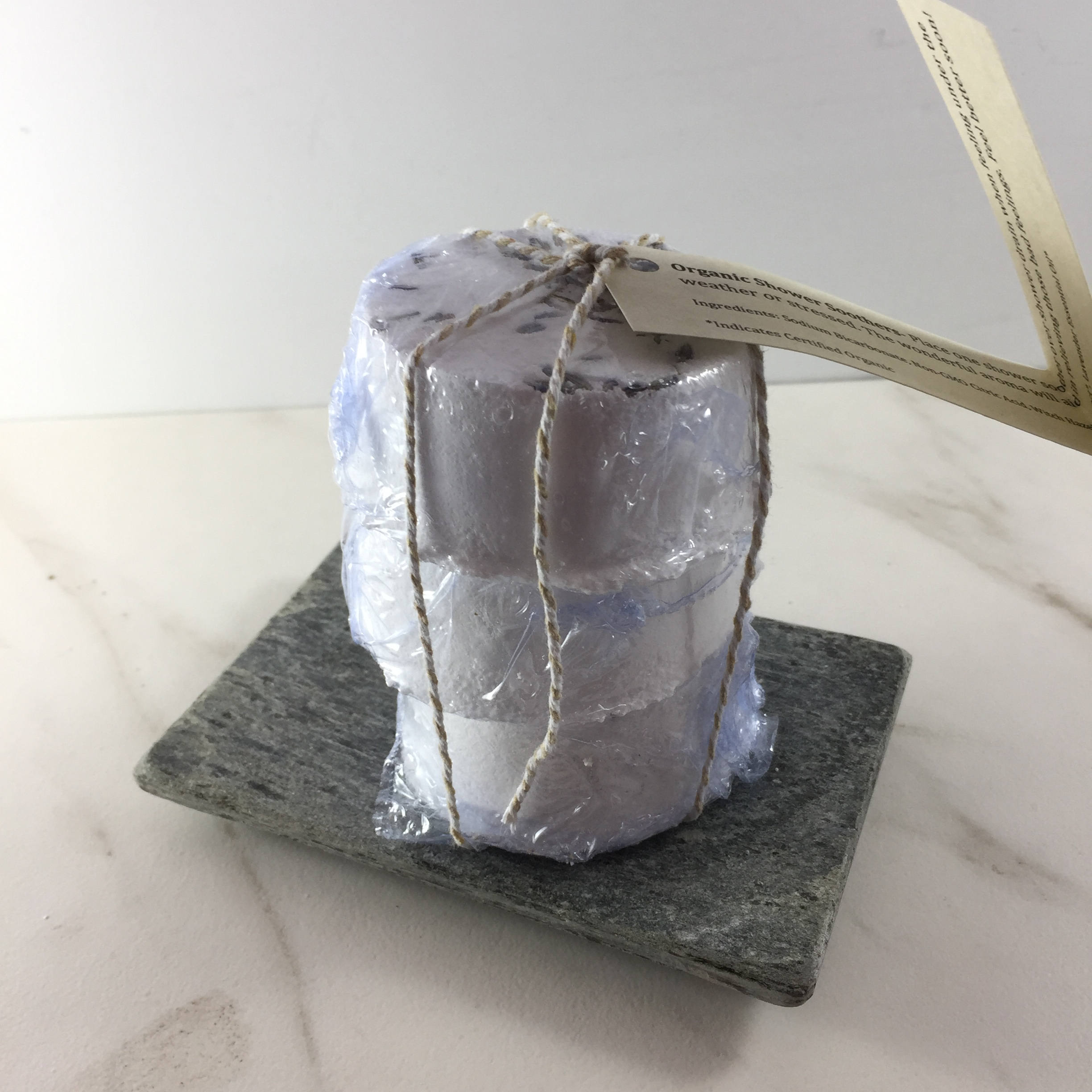 Fizzing Shower Soothers are great after a long day. The soothing scent of lavender takes you away to a calm place and eases all your tensions. A handcrafted half circle fits perfectly over your shower drain and fizzes as it releases the aromatic essential oils to relax you and free you from your stress. This posting is for a set of three soothers to enjoy as you please.