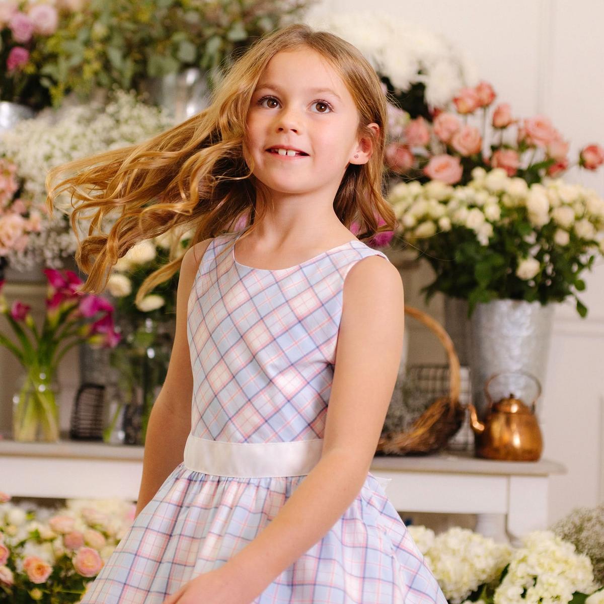 Our playful party dress in soft organic cotton has all the incredible details that make it perfect for everything from dinner with the family to twirling on a dance floor. Features a grosgrain ribbon waist sash with bow, full skirt, crossback straps, and side zipper for easy on and off. A showstopper!