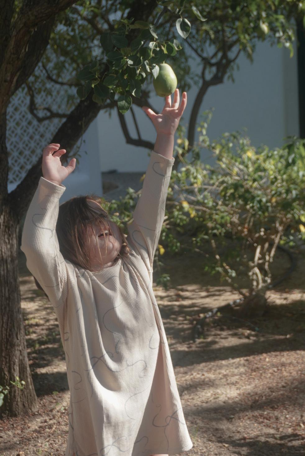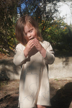 This gorgeous organic Pima cotton kids dress is perfect for your little one. The luxurious lightweight fabric features a beautiful breeze print and is soft and comfortable for all-day wear. It is made from the finest organic Pima cotton, which is highly durable and breathable, making it an ideal choice for everyday wear. The dress features a round neckline, long sleeves and a boxy fit making it easy to slip on and off. Use as is or layer with pants or stockings in colder weather.
