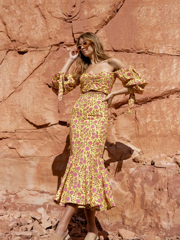 Sexy can I. This flirty fluted skirt has a bottom peplum finished with the highest quality fusing to give the feeling of movement, even when you're standing still. A twirl without a twirl. She's full, fun, and will make you want to salsa.