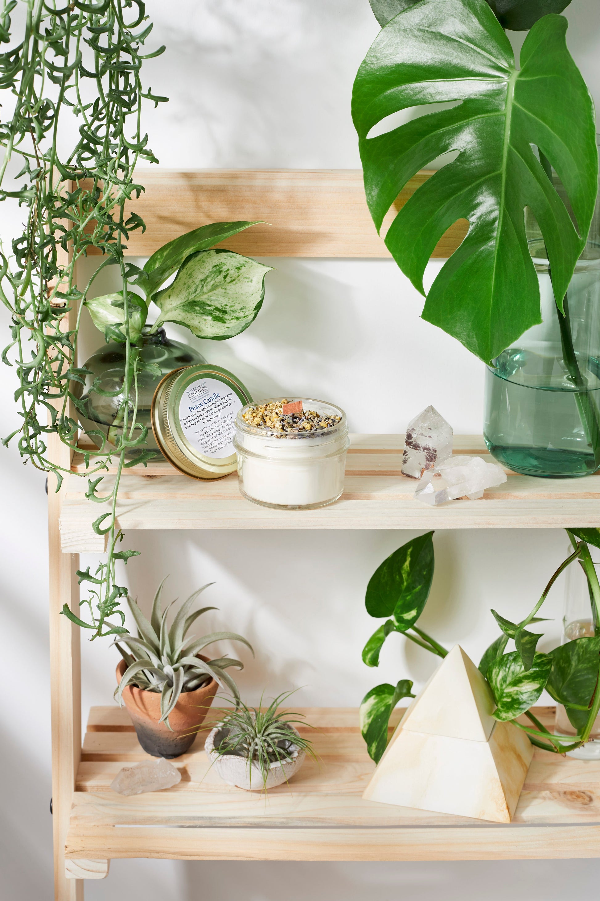 This intention candle is 4 oz of hand-poured soy wax in a glass jar with a metal lid. This candle has a wood wick and is infused with organic essential oils to promote peace and calm. We've topped it with, chamomile for calm, lavender for peace and a handpicked and charged clear quartz crystal. We chose quartz as it clears and absorbs all negative energy, promotes wellbeing and protection. It handles all of the negativity and clears any negative attachments allowing you and your energy to grow and flow freely.