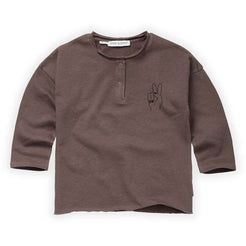 Peace out in this Sproet & Sprout solid grandad sweatshirt with peace hands. This chocolate brown peace sweatshirt looks super cool. With a boat neckline and two handy ‘grandad' press studs, which are also convenient when dressing and undressing the tiniest babies.