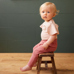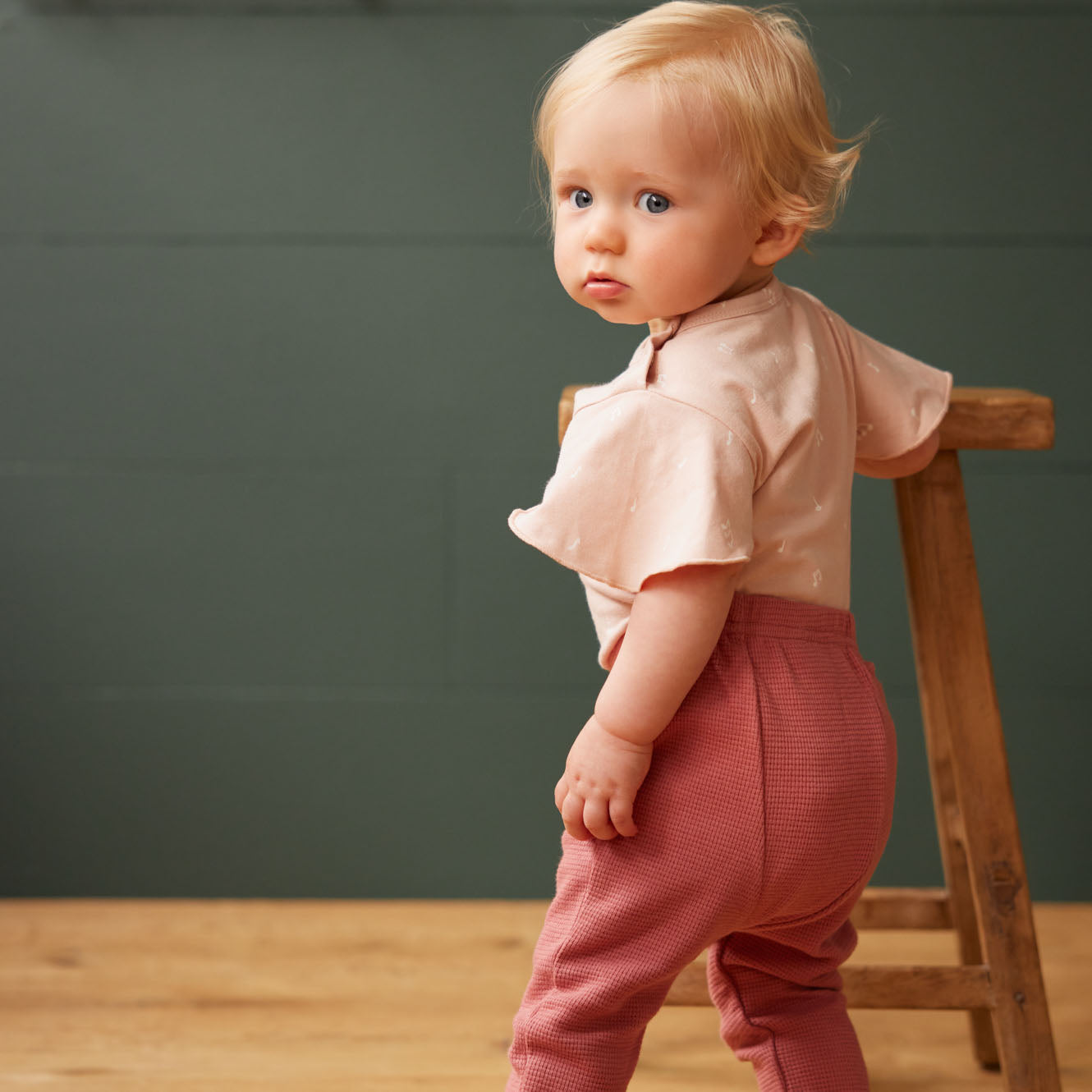The sweetest petal sleeve bodysuit featuring a frill sleeve and YKK domes at shoulder and crotch to make for easy changes. Our beautiful stretch jersey is super stretchy while still holding its shape, and allows for easy dressing while the bodysuit grows and stretches with the child, so you get ultimate use out of it. To minimise shrinkage, this fabric has been pre-washed. * GOTS certified CU 862149 * 95% organic cotton, 5% elastane stretch jersey * fluted sleeves * round neckline with snap closure at shoulder * easy snap YKK domes