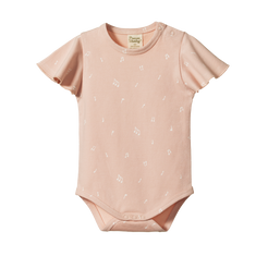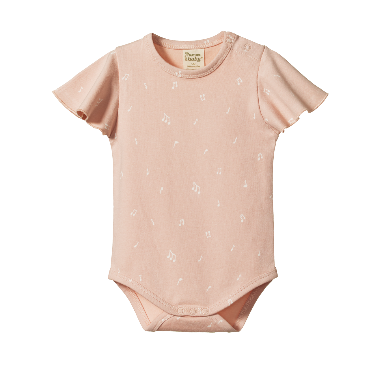 The sweetest petal sleeve bodysuit featuring a frill sleeve and YKK domes at shoulder and crotch to make for easy cha...
