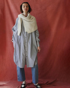 Oversized cotton shirt dress with gathered inseam sleeve detail (giving the "done for you" pushed up sleeve look), gathered back yoke design, and inseam pockets. Zero effort needed in this versatile shape you can wear all year and styled a million ways. Length from shoulder to hem=44" Offered in Navy/Ivory, and Red/ivory. 100% cotton