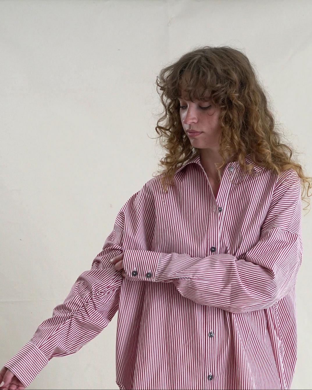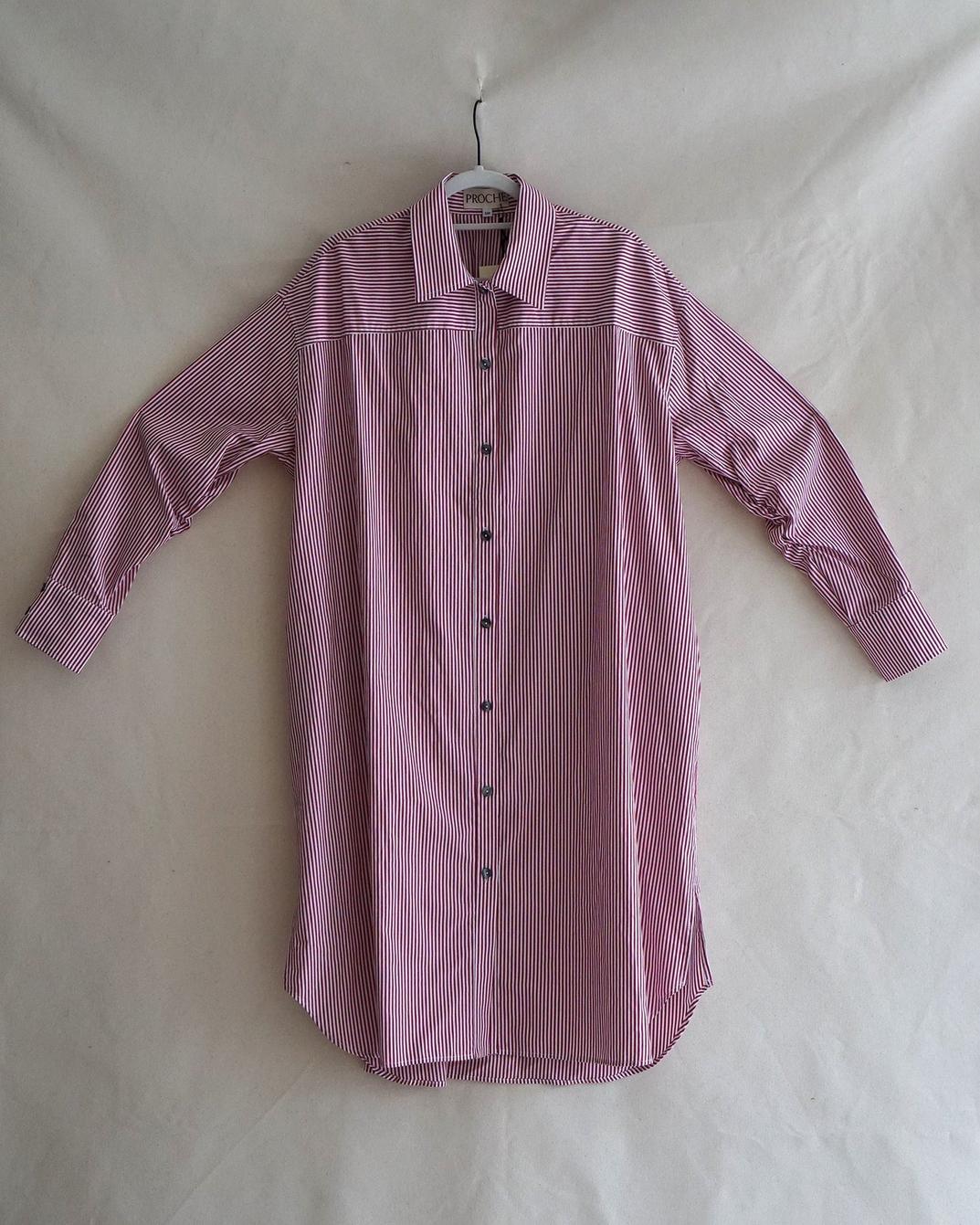 Pin Stripe Shirt Dress - Red