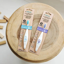 Jack N' Jill pioneered the use of corn starch for toothbrush handles and packaging in 2010. This plant derived material is compostable and its use has enabled us to avoid single-use plastics which continue to wreak havoc on the environment. Jack N' Jill aims to help raise awareness for plastic-free products and donate money to environmental causes.