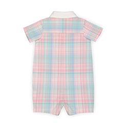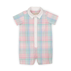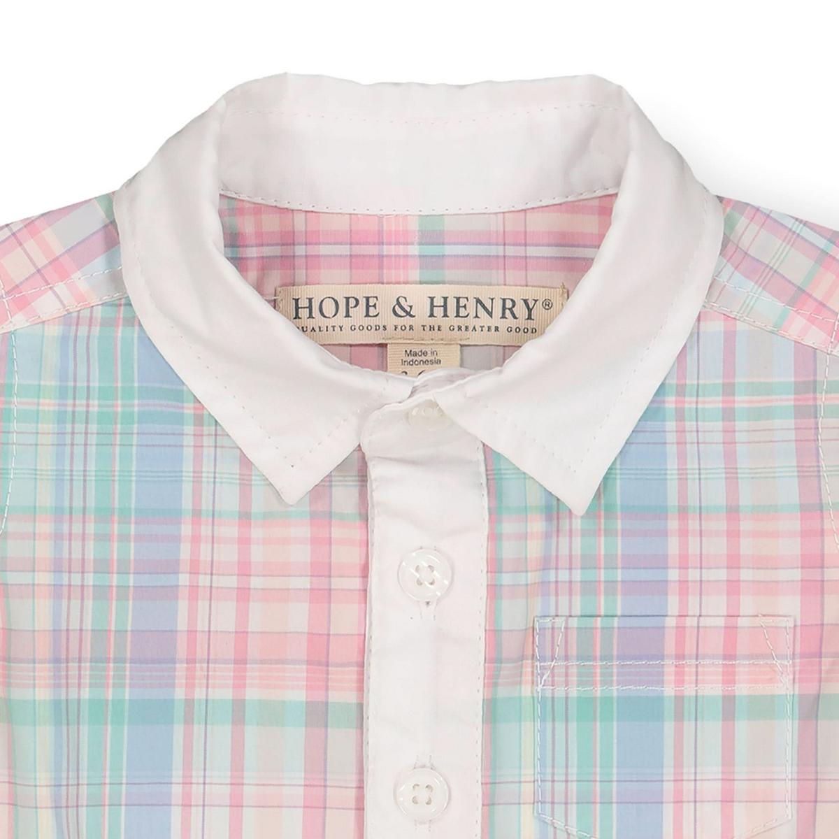 Thanks to our breezy organic cotton poplin, our woven one-piece will keep your little guy looking dapper and feeilng cool on warm-weather days. Features a white woven collar and button placket, functional front pocket, buttons down the center front, and gusset snaps to make diaper changes a fuss-free affair. Ready for picture perfect moments!