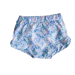 For a fun take on shorts, we love the racer shorts on boys and girls. This season, we've sewn it in a blue-toned floral with accents of pink. Loose, easy fit and side slit at hem makes the design moveable and stylish to wear. Pair with gauzy tees and tunics. 100% cotton
