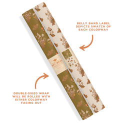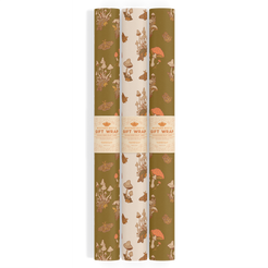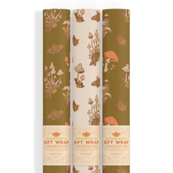 A charming and sustainable way to wrap your holiday gifts. This limited edition set features an original Mushroom illustration in warm, wintry color palettes. Each sheet is double-sided with coordinating colorways, offering six unique designs in one set. Made in California using uncoated, recyclable paper and shipped plastic-free in a sturdy tube. Each sheet measures 20x29".