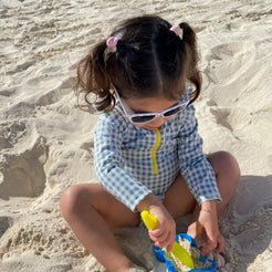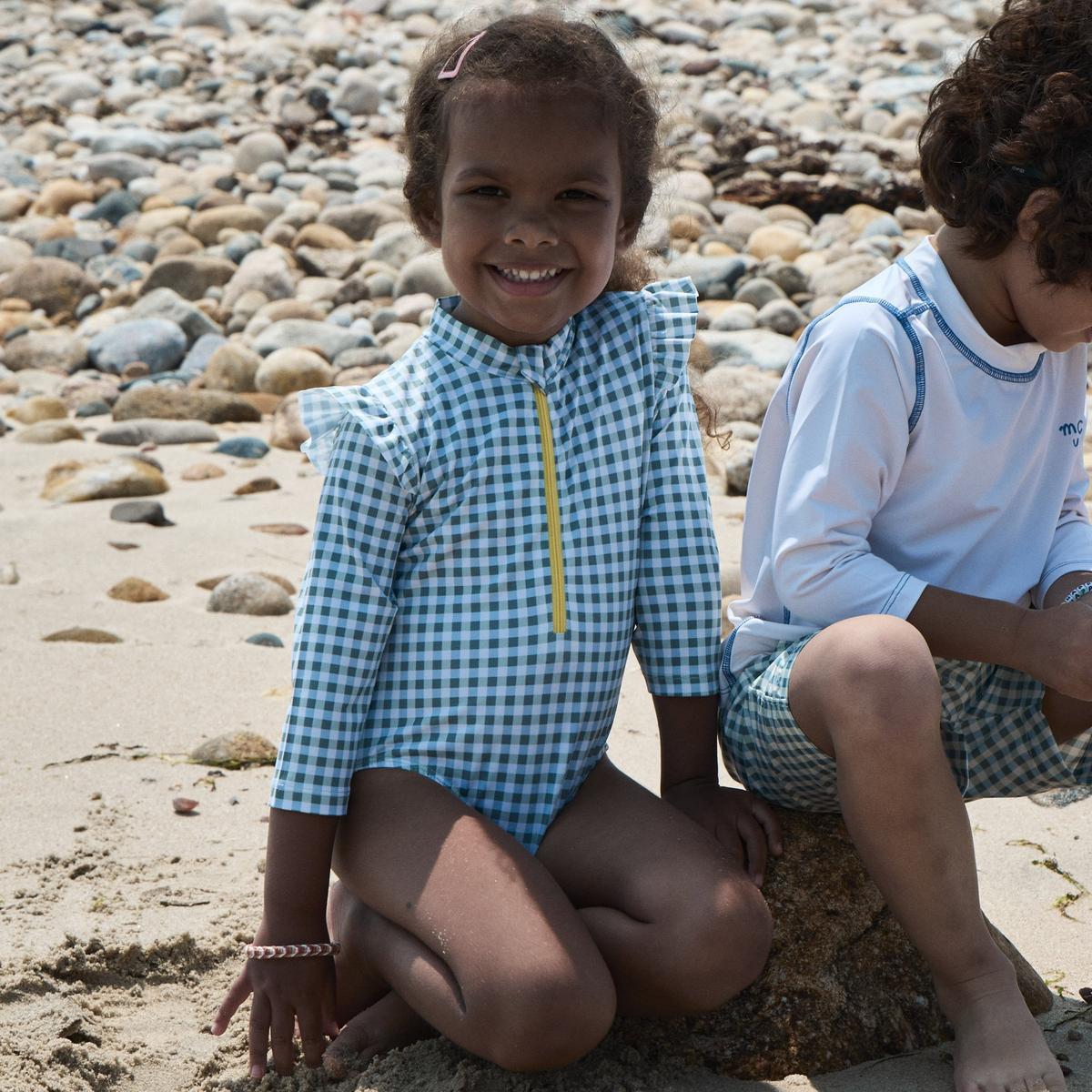 Responsibly made with recycled plastic bottles, our rashguard baby swimsuits are UPF+ 50 and chlorine resistant. Made with snaps underneath, it is an easy pull-up, to allow comfort and protection while playing in the sun. This style fits true to size, please refer to the size guide. For each purchase 1% of the sale goes to the restoration of the natural environment. Made in Portugal.