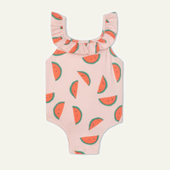 Recycled Polyester Watermelon Slices Ruffle Kid Swimsuit - Sepia Rose/multi