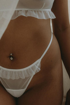 We're digging into the 2000's archives with the Remi G-String. Introducing our first classic g-string that features our signature mesh and a subtle frill for a sweet yet sexy look. The soft elastic gives you all the comfort and stretch. Style it with a pair of low rise jeans to give a little sneak peek.