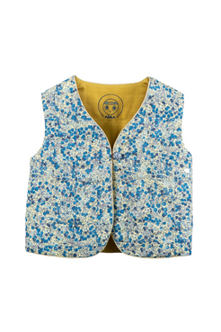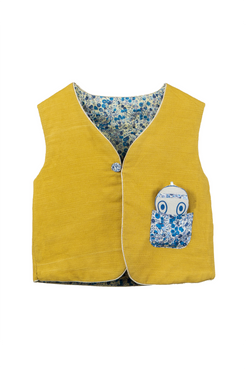 The upcycled Miel-Myrtille vest alternates between poetry and freshness, matching all styles and seasons. It is made in our workshop in Madagascar. Note: Teddy toy not included.
