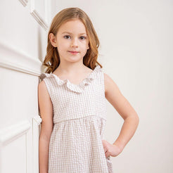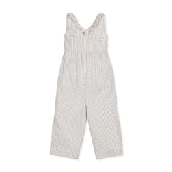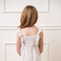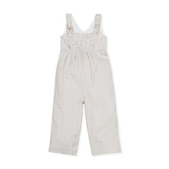 Our adorable ruffle neck jumpsuit in soft organic cotton will be your girl's go-to choice for spring days and summer vacations. Features a ruffle detail along the neckline, smocking in the back bodice for a comfortable pull-on fit, side pockets, and comfy wide legs. Get the camera ready with this light and breezy wardrobe staple!