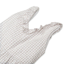 Our adorable ruffle neck jumpsuit in soft organic cotton will be your girl's go-to choice for spring days and summer ...