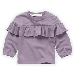 Cool with a hint of sweetness: that's this lilac girls T-shirt with ruffles. The Sproet & Sprout ruffle T-shirt in purple is lilac with a ruffle on the front that continues on the sleeves. The lilac girls layered shirt has slightly puffed sleeves and a round neckline. Ideal: in the baby sizes, this long-sleeved top has press studs at the shoulder.