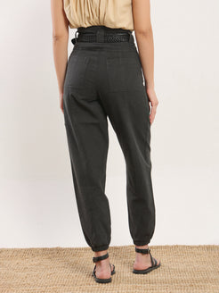 The comfort of your favorite joggers in a structured linen blend. An ultra high rise waistline, wide belt loops, and ...