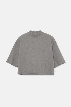 Sweater in ultra-smooth, ribbed cotton. Stand-up collar. Dropped shoulders and three-quarter sleeves. Straight fit. Raw trim details. Gently cropped. Stretchy for extra comfiness.