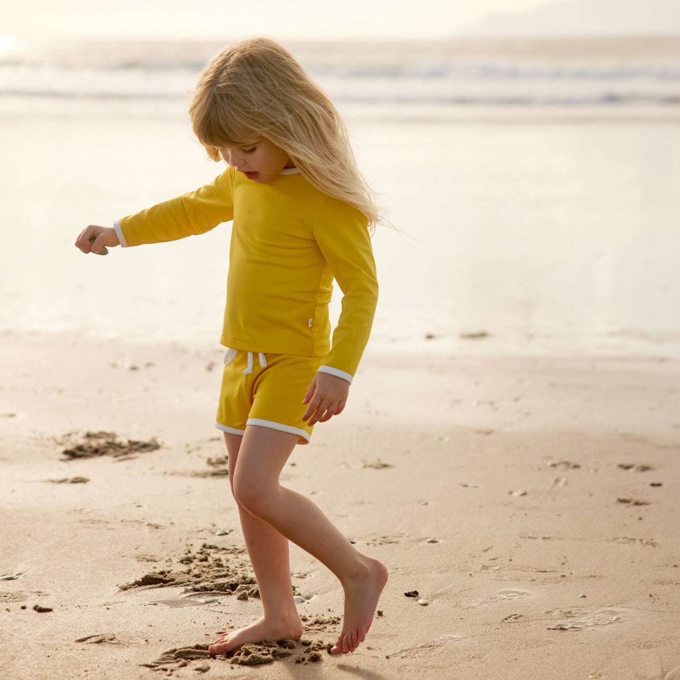 Made from new ECONYL® regenerated nylon, from plastic waste rescued from oceans and landfills around the world. This swim top is perfect for long sunny days and water play! Made with full length long sleeves, and a generous length in the body, this top will cover all areas and protect from the sun. All of our swimwear is UPF50+, the highest specification to keep little one protected from the sun’s ultraviolet radiation. * 78% ECONYL® regenerated nylon, 22% elastane * Global Recycled Standard certified fabric * UPF50+ * folded neckband and binding at sleeves