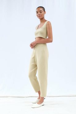 The fully fashioned rib tank has a cropped fit and features square neckline on the front and back. Mini roll finishing at neck and armhole. - 100% Cotton - Made in Peru - Model wears a size S - Model Measurements: Height-5'10", Chest-32", Waist-24", Hip-34"