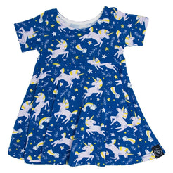 Swirly Girl Short Sleeve Dress - Grecian Unicorn Blue