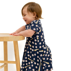 Swirly Girl Short Sleeve Dress - Little Slugger Navy