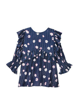 Super soft cotton voile cast in our signature shimmer pansy print, the Sybil promises to be in top rotation. Pintuck detailing, long sleeves, and soft ruffles at the sleeves and waist give this already feminine silhouette a romantic edge. Pair with your favorite high-waist jeans or skirt.