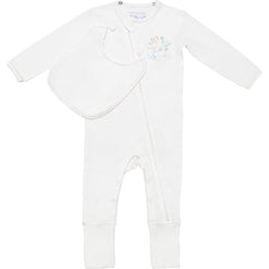 Suitable for all-day, everyday wear and is the only garment of clothing your baby needs for their first year of life. Revolutionary features include a detachable bib, fold-over footies, a two-way zipper, and leg snaps for the easiest changes. Sustainably and ethically made with ultra-soft 100% organic Pima Cotton.