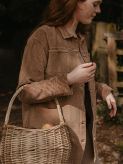 Cozy organic corduroy meets cool weather perfection. This versatile shacket style features two chest pockets with wooden buttons down the front.