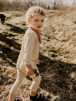 Soft, sophisticated, and functional, our bandana-inspired, two-tiered linen bib features brushed brass snaps in the back for easy on and off. Wear it with a beloved Free-Ranged Playsuit or any of your favorite basics.