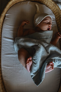 A soothing security 15x15 lovey designed to provide comfort and companionship from a baby's earliest days into early years. Made with premium organic cotton, this breathable, ultra-soft lovey offers warmth and reassurance for sensitive skin. Ideal for newborn snuggles, travel-friendly car seat adventures, and as a thoughtful gift for baby and her. Outer shell: Woven from premium organic jersey + muslin cotton that is pre-washed for extra softness and breathability Filled with a thin layer of 75-gsm polyester to give it a little fluff! Carefully crafted + sustainably sourced in India GOTS Certified + made without the use of harmful chemicals, pesticides and dyes -Comes wrapped in a headband (2 in 1) and instantly giftable for an expecting Mama. If the headband doesn't apply, Mama can double it up as a hair tie for herself. -25% of net annual profits are donated to helping kiddos born with pediatric heart disease."