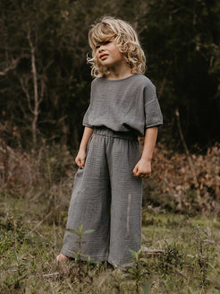 With wide legs and a comfortable, adjustable elasticated waist, our organic cotton Muslin Culotte is light as air and the perfect transitional piece for playing in the breeze. • Composition: 100% organic cotton muslin • Made with love in Portugal