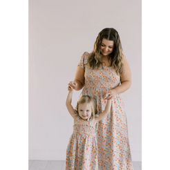 Additional details: - Ethically made in a GOTS certified factory in Bangladesh - Created by moms for their littles - Knee length, midi cut - Pre-shrunk and washer safe - Matching Women's Design Available - Box on straps are not adjustable