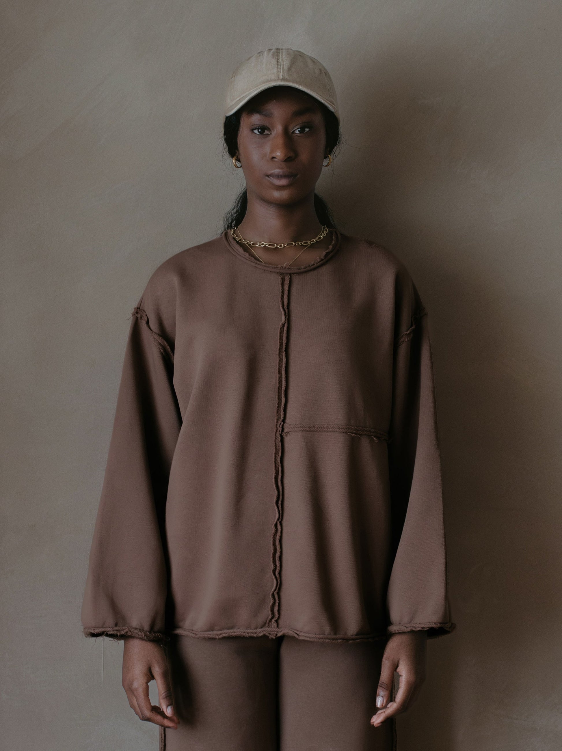 Abi’s favorite sweater of the season! Oversized for the comfiest fit, The Raw Seam Sweater features a raw seam, and panel detailing and is crafted from the softest hemp/cotton blend fleece. Complete the look with The Raw Seam Sweatpant.