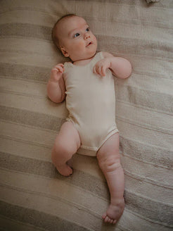 The perfect staple for every minimalist wardrobe and carbon-brushed to be soft as a cloud against your little one’s delicate skin, our Sleeveless Onesie has a rounded neckline and crotch snaps, making it the perfect layering piece (especially with our Essential Sweater or Muslin Bloomer).