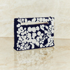 This Tiana Designs x EDDY collaboration hand beaded bag is the perfect complement to our apparel. The motif of this piece is inspired by the intricate floral embroidery in midnight and cream in the Doris pieces. Elegant and functional, it features an optional shoulder strap and premium satin lining