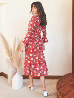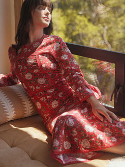 This textile has been created through a table block printing process. A technique done by hand, in special workshops, using ancient methods. Because of the art of hand printing, subtle print and dye variations will occur on this fabric. These are a part of the beauty and character of garment and make it all the more special