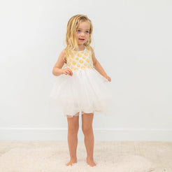 Our Tutu Dress is for the little girl who hoards shoes like her mamma and needs to sparkle at all points in time. She will instantly feel like a princess with this tulle trimmed dress.