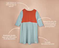 The best dress to layer all winter long. Our beloved color block dress just grew some long sleeves. Naturally soft an...