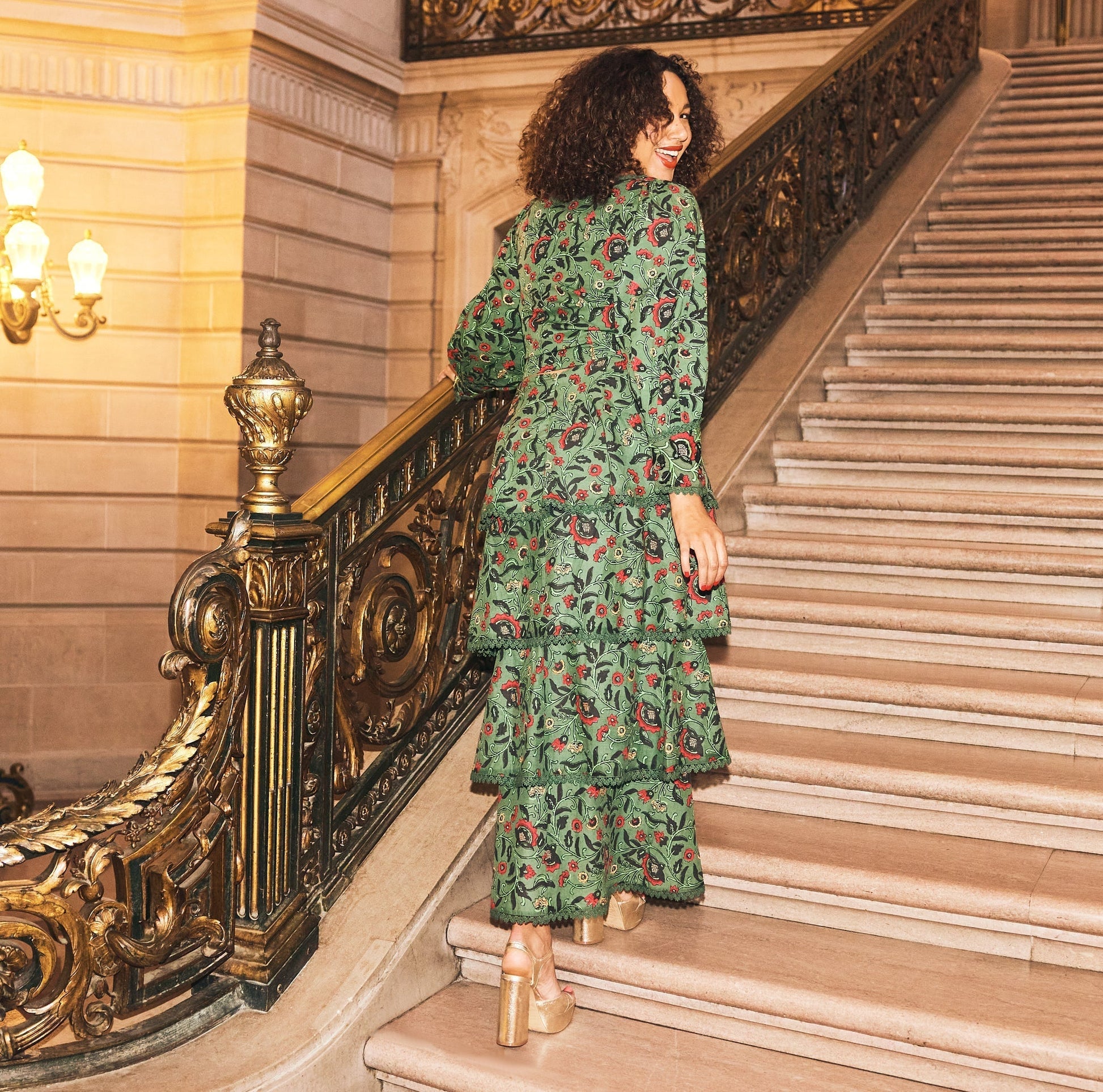 This textile has been created through a block printing process. This is a technique done by hand, in special workshops, using ancient methods. Because of the art of hand printing, subtle print and dye variations will occur on this fabric. These are a part of the beauty and character of garment and make it all the more special